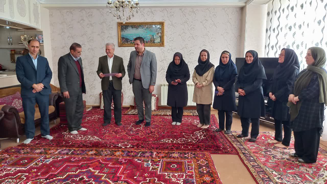 🔹️امروز سهشنبه ششم آبان ماه، دکتر حسن نیکآذر، مدیر شبکه بهداشت و درمان اهر، به همراه مهندس عبدی، مدیر داخلی بیمارستان باقرالعلوم اهر، خانم مهتدی فر، مترون بیمارستان و مسئولان بخشها، طی دیدارهایی جداگانه در منزل آقای طالبی، آقای فرخزاده و سرکار خانم اسمی، از مقام والای پرستار و زحمات این عزیزان در دوران اشتغال قدردانی کردند.